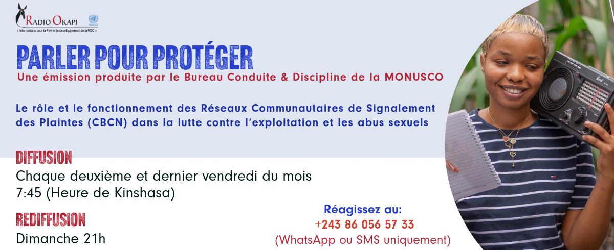 Ce nouveau numéro de « Parler pour Protéger » l’émission produite par le Bureau Conduite et Discipline de la MONUSCO, met en lumière le rôle et le fonctionnement des Réseaux communautaires de signalement des plaintes (CBCN) dans la lutte contre l’exploitation et les abus sexuels impliquant le personnel des Nations Unies et leurs partenaires en République démocratique du Congo.