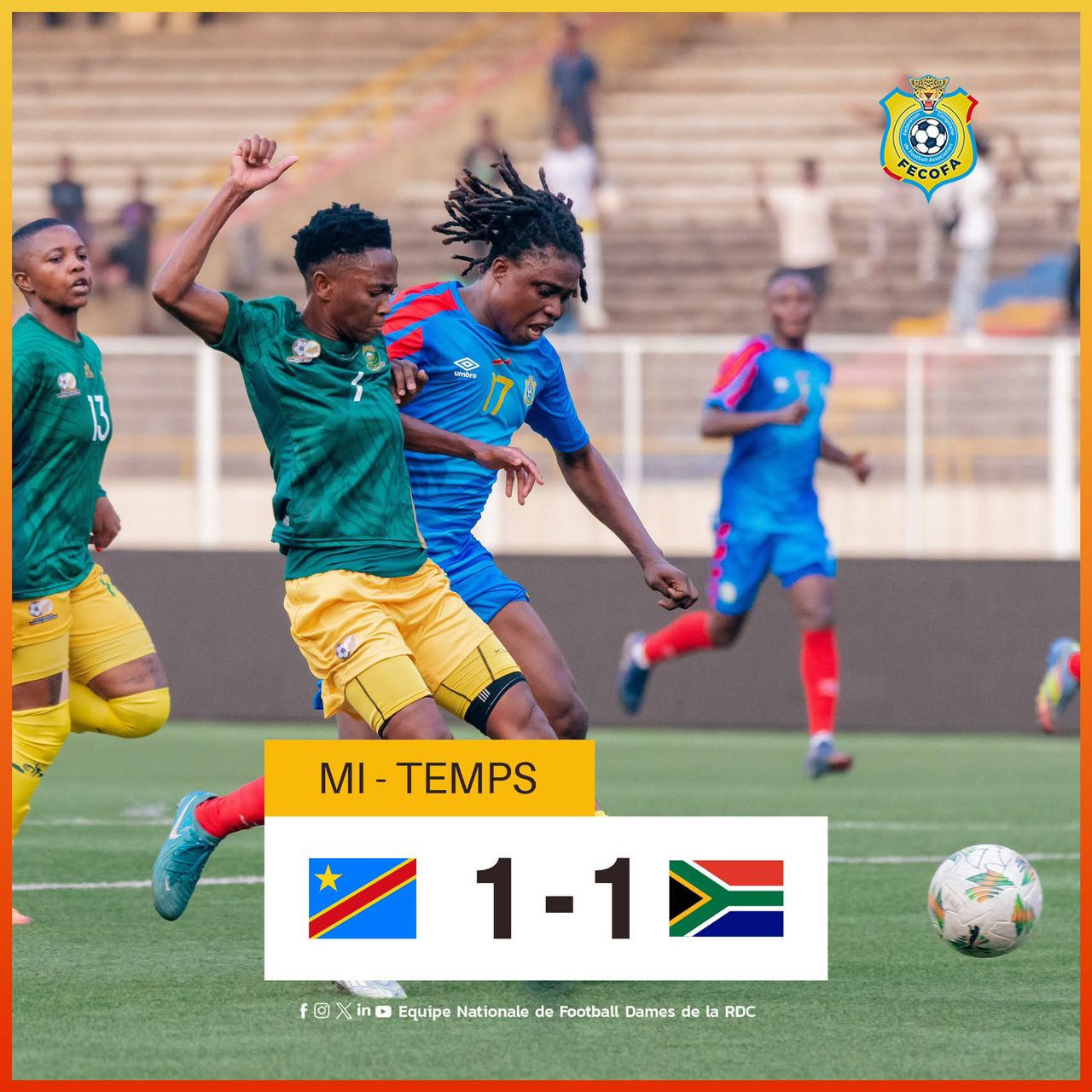Les Sud-Africaines ont ouvert le score à la 41e minute grâce à Greta Bonolo, avant que Ruth Kimpoyi n’égalise pour la RDC à la 45e minute.