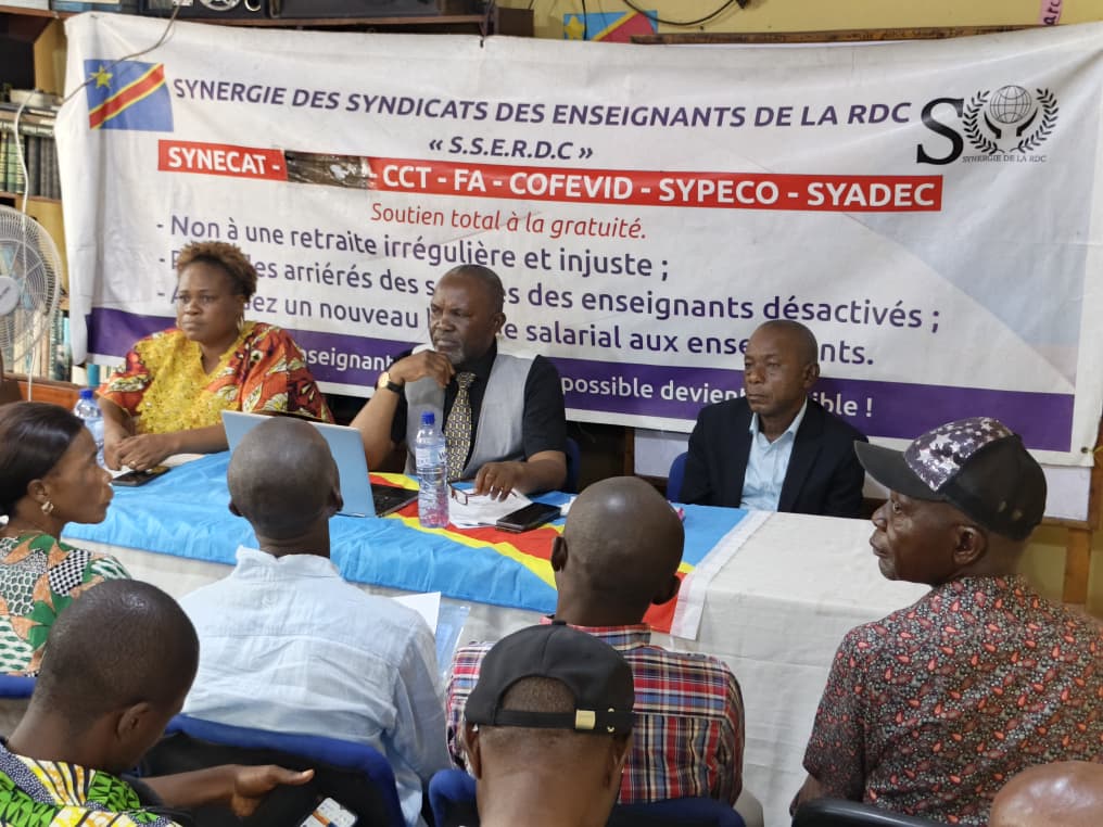 « Les enseignants membres de la Synergie des syndicats des enseignants de la RDC ont passé en revue les différents points à l’origine des dysfonctionnements sans précédent constatés dans la gouvernance de notre système éducatif. S’agissant de la retraite des enseignants, la procédure initiée par les ministères de l’Éducation nationale depuis 2021 envoie les enseignants à la mort, à travers un processus bancal et irrégulier. Les enseignants qui partent à la retraite ne sont ni préparés ni notifiés », a-t-il déclaré.