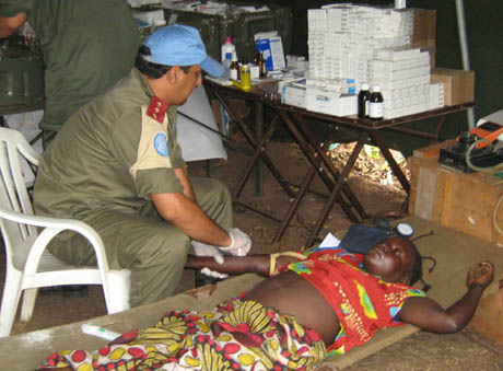 C’est depuis décembre 2 009 que les casques bleus tunisiens sont déployés à Bozene, localité située à 90 kilomètres de Gemena, dans la partie nord de la province de l’Equateur. Une présence rassurante qui a incité bon nombre des gens qui avaient fui leur village à retourner avec confiance. Selon les humanitaires, 90% des habitants de Bozene sont rentrés au bercail après avoir erré pendant plusieurs semaines. Ils sont enthousiastes. A la vue d’un hélico de la Monuc qui vient se poser sur le terrain de football, en face du camp des casques bleus, on les voit, jeunes et vieux, enfants, hommes et femmes, qui s’empressent avec joie sur lieu, avec des éloges sur la bouche à l’endroit des forces onusiennes. « J’ai constaté que leur présence a fait sortir beaucoup de gens de la forêt et nous vivons ensemble. Pour nos malades, ils interviennent très bien. S’il y a un cas qui les dépasse, ils mettent leurs moyens pour transférer les malades à l’hôpital. Jusque là il n’y a rien à leur reprocher. Et comme nous sommes là, les militaires et les policiers ne nous tracassent pas, craignant la présence de casques bleus. Donc, nous sommes bien. » Témoignage d’un habitant de Bozene.