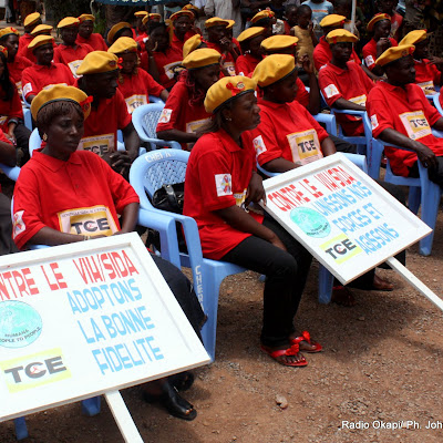 Les membres d’une ONG(TCE) de luttes contre le VIH/SIDA assissent avec des panneaux ce 6/11/2009 à Lubumbashi, lors du lancement officiel du programme TCE dans la province du Katanga. Radio Okapi/ Ph.