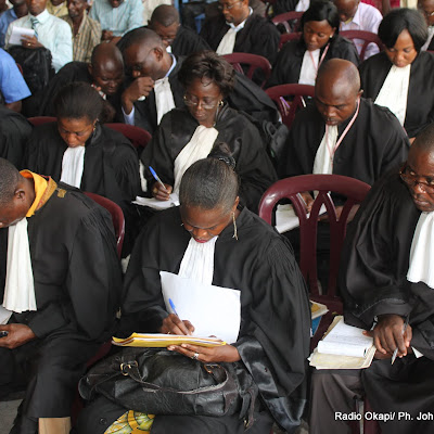 Les avocats de la partie civile ce 9/05/2011 à Kinshasa, lors du procès Chebeya à la prison centrale de Makala. Radio Okapi/ Ph. John Bompengo