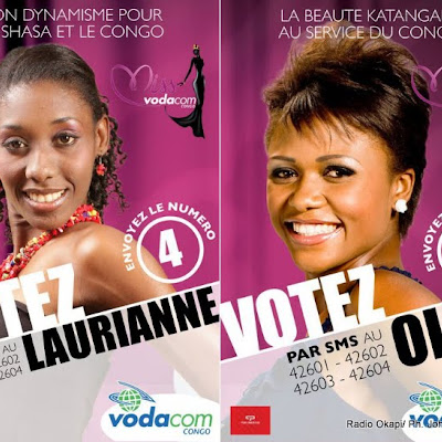 De gauche à droite, Lauriane Odio de Kinshasa qui doit ceder sa couronne de Miss Vodacom à Olga Yumba de Lubumbashi.