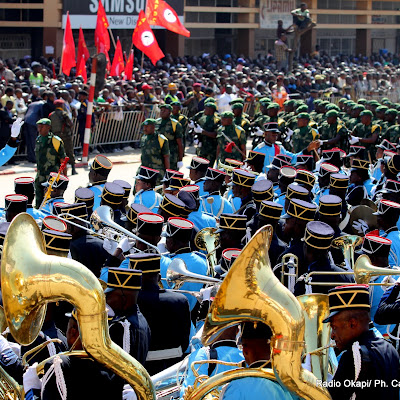 Sous la fanfare de Fardc, les troupes marchent ce 30/06/2011 à Lubumbashi, lors du défilé marquant le 51ème anniversaire de l’indépendance de la RDC. Radio Okapi/ Ph.