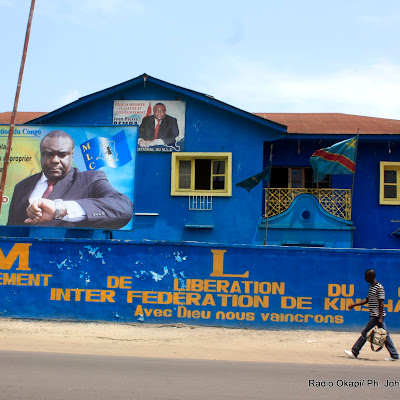 Un homme passe devant le siège du MLC ce 17/03/2011 à Kinshasa. Radio Okapi/ Ph. John Bompengo