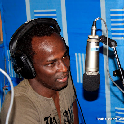 Le journaliste Jean-Marc Matwaki de Radio Okapi, en reportage dans la préparation d’un spectacle de ballet.