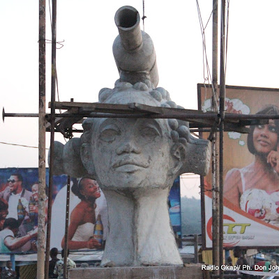 Une oeuvre en construction de l’artiste Liyolo dédiée à la femme, érigée au croisement des avenues Kimwenza et By-pass, vers la route de CNPP-Unikin. Radio Okapi/ Ph. John Bompengo