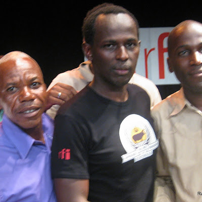 L’humoriste nigérien Mamane en T-shirt noir après une représentation à Kinshasa (Avril 2011)