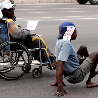 Quelques personnes vivant avec handicap marchent ce 22/06/2011 à Kinshasa, lors de la campagne de sensibilisation contre la polio. Radio Okapi/ Ph. John Bompengo
