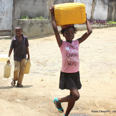 Des mineurs à la recherche de l’eau potable au quartier Livulu dans la commune de Lemba à Kinshasa le 23/03/2015. Radio Okapi/Ph. John Bompengo