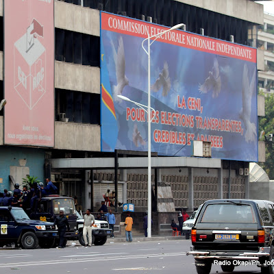 Une vue du siège de la Ceni ce 8/07/2011 à Kinshasa, après le passage des manifestants de l’UDPS. Radio Okapi/ Ph. John Bompengo