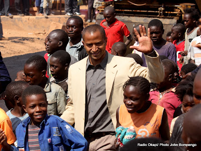 Au centre, Moise Katumbi, gouverneur de la province du Katanga, saluant la foule le 29/6/2011, lors d’une visite des travaux de réfection des routes dans la ville de Lubumbashi. Radio Okapi/Ph.