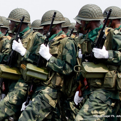 Armes à main, les militaires de Fardc concentrés lors du défilé du 30 juin 2010. Radio Okapi/ Ph.