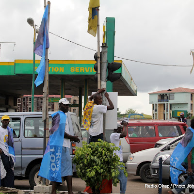 Des drapeaux posés le long d’une des avenues principales de Kinshasa, pendant la période de campagne électorale par des partisans des candidats aux élections de 2011 en RDC. Radio Okapi/ Ph.