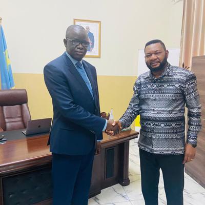 Le président du COC, Amos Mbayo, posant aux côtés de l’ambassadeur de la Grande Brétagne en RDC, Neil Wigan/Photo Radio Okapi.