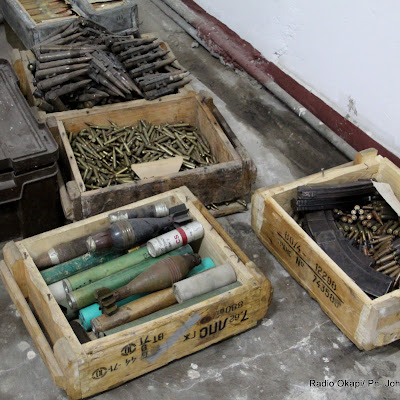 Caisses des explosifs et des minutions dans un dépôt d’armes à Kinshasa. Radio Okapi/ Ph.