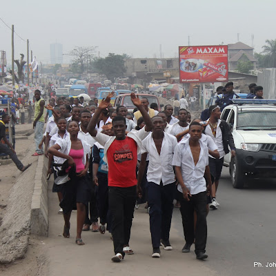 Quelques élèves finalistes, célèbrent la fin de la dernière épreuve de l’examen d’Etat ce 23/06/2011 à Kinshasa. Radio Okapi/ Ph. John Bonmpengo