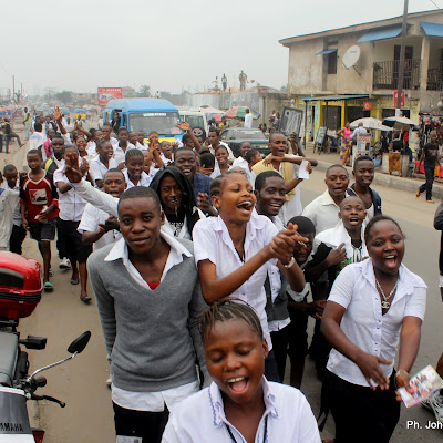 Quelques élèves finalistes, célèbrent la fin de la dernière épreuve de l’examen d’Etat ce 23/06/2011 à Kinshasa. Radio Okapi/ Ph. John Bonmpengo