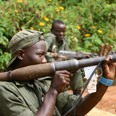Militaires FARDC avec un lance roquettes, Sud Kivu, 2006.