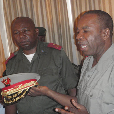 Le chef d’état major général Didier Etumba montre les nouveaux insignes militaires aux officiers FARDC