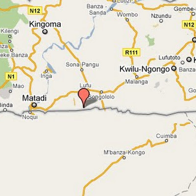 Village de Nkamuna (marqué en rouge sur la carte) dans le territoire de Songololo à Bas-Congo.