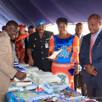 Des autorités congolaises et de la Monusco, lors de l’ouverture de la foire de l’entreprenariat féminin à Kinshasa, ce 14/03/2011.