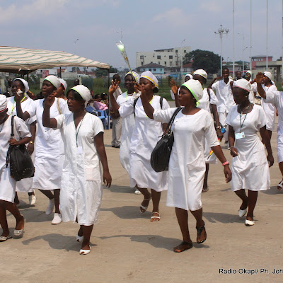 Des élèves en sciences infirmières marchent ce 12/05/2011 à l’esplanade du Stade des Martyrs à Kinshasa, lors du défilé marquant la journée internationale des infirmiers.