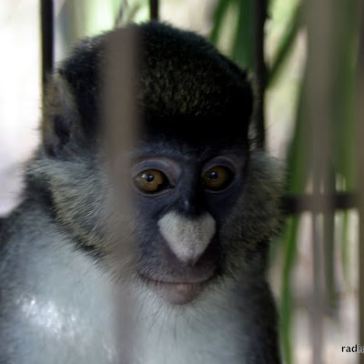 Un singe Hocheur blanc-nez en captivité dans un centre de recherche à Kinshasa, 2003.