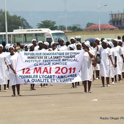 Des élèves infirmières marchent ce 12/05/2011 à Kinshasa, lors du défilé marquant la journée internationale des infirmiers. Radio Okapi/ John Bompengo