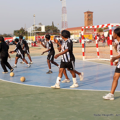 Séance d’entrainement de l’équipe de Mazembe, handball féminin au stadium omnisport Joseph Kabila Kabange de Lubumbashi. Radio Okapi/ Ph.