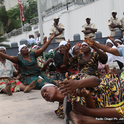 Des femmes de l’opposition congolaise le 19/12/2011 devant l’ambassade des USA à Kinshasa, à la veuille de la prestation de serment de Joseph Kabila. Radio Okapi/ Ph.