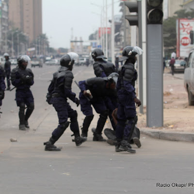 La police disperse les manifestants le 1/9/2011 à Kinshasa, lors d’une marche des opposants. Radio Okapi/ Ph. John Bompengo
