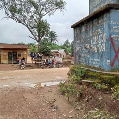 A coté de leur maison d’habitation, les membres d’une même famille suivent le passage du cortège du gouverneur du Nord-kivu, lors de sa première visite officielle à Rutshuru après le conflit Ph John Bompengo/ Radio Okapi