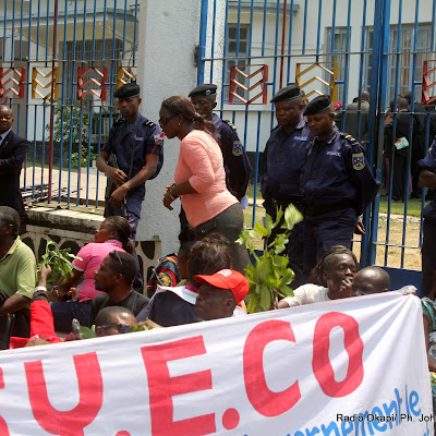 Sit-in de quelques enseignants membres du Syeco devant la primature, le 2/03/2011 à Kinshasa. Radio Okapi/ Ph. John Bompengo