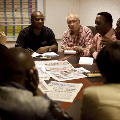 Une conférence de rédaction à Radio Okapi (Kinshasa/RDC). Radio Okapi/Ph. Gwenn Dubourthoumieu