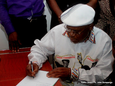 Etienne Tshisekedi dépose sa candidature pour la présidentielle 2011, le 5/09/2011 au bureau de réception, traitement des candidatures et accréditation des témoins et observateurs de la Ceni à Kinshasa. Radio Okapi/ Ph.