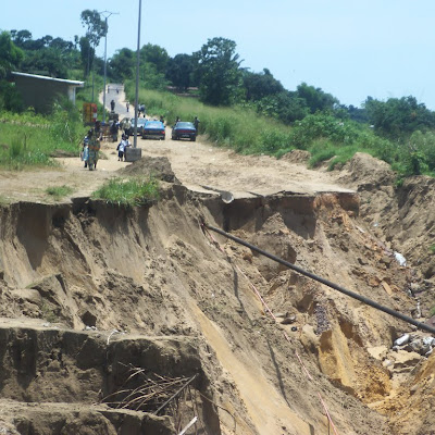 Une érosion à l’entrée de Zamba Télécom à Kinshasa, 01/02/2011.