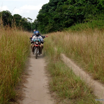 La route entre Dingi et Tshombe-Kilima dans le nord ouest du Maniema. Seuls les motos et tolekas peuvent circuler aujourd’hui sur ce tronçon, comme la plupart des routes de la province aujourd’hui. Photo: bonoboincongo.com