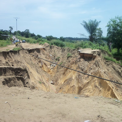 Une érosion à l’entrée de Zamba Télécom à Kinshasa, 01/02/2011.