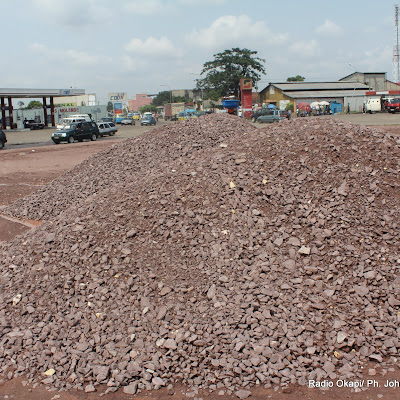 Des caillasse stokés au rond point Molard ce 10/05/2011 à Kinshasa, lors des travaux d’élargissement des routes. Radio Okapi/ Ph.