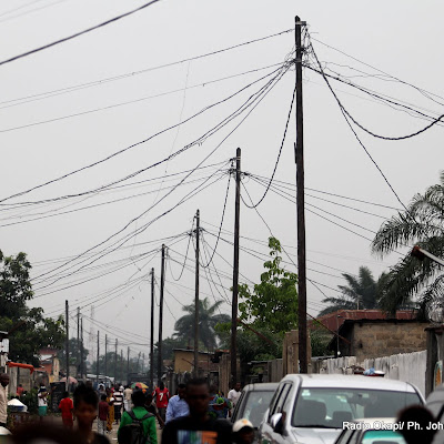 Des câbles électriques de la SNEL raccordés le long d’un quartier populaire de Kinshasa. Radio Okapi/ Ph. John Bompengo