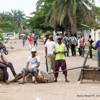 Barrière érigée par des manifestants de l’UDPS le 8/12/2011 au croisement des avenues qui conduisent vers le siège de leur parti politique et la résidence de leur leader Etienne Tshisekedi. Radio Okapi/ Ph.