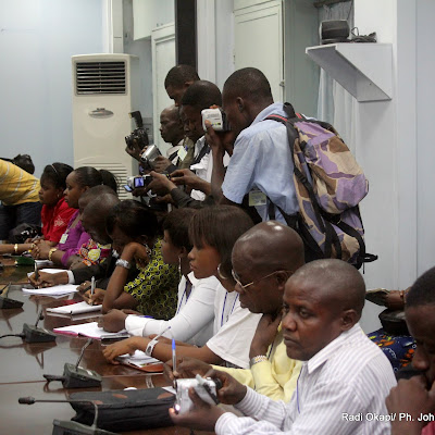 Quelques journalistes au point de presse hebdomadaire de Nations Unies animé par Amadou Ba le 17/08/2011. Radio Okapi/ Ph. John Bompengo
