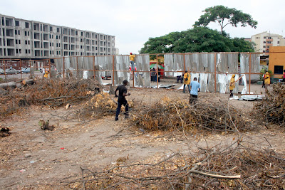 Démolition de la clôture faite sur le terrain COMETE à Lingwala sur l’ordre de l’hôtel de ville, Kinshasa/RDC le 10/02/2012. Radio Okapi/Ph. Aimé-NZINGA