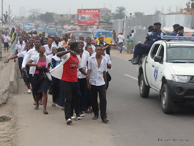 Quelques élèves finalistes, célèbrent la fin de la dernière épreuve de l’examen d’Etat ce 23/06/2011 à Kinshasa. Radio Okapi/ Ph. John Bonmpengo