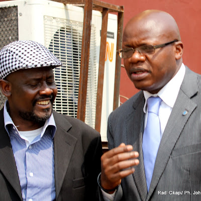 De gauche à droite, Franc Diongo et Thomas Luhaka, membres de l’opposition congolaise, le 16/08/2011 à Kinshasa, invités à l’ouverture du 2ème congrès du RCD. Radio Okapi/ Ph. John Bompengo