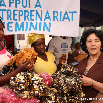 A droite, Madame Leila Zerrougui, représentante spéciale adjointe du SG de l’Onu en RDC le 12/3/2012 à Kinshasa, lors de la visite de 4èm foire de l’entreprenariat féminin. Radio Okapi/ Ph. John Bompengo