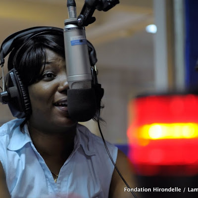 Nicole Ngaka dans le studio de la Radio Okapi à Kinshasa, 2010.