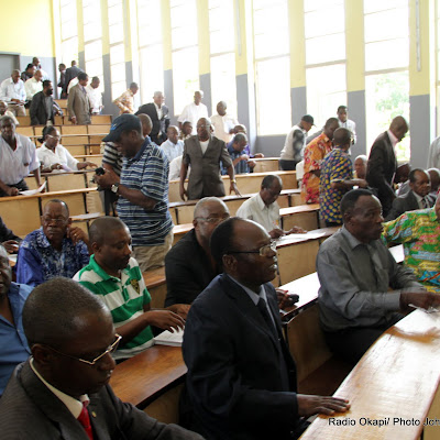 Des professeurs de l’Université de Kinshasa(Unikin) le 2/11/2011, lors d’une assemblée générale de leur association en sigle Apukin. Radio Okapi/ Ph. John Bompengo