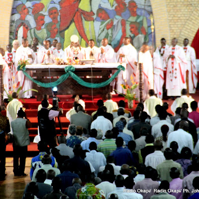 Des évêques catholiques, lors d’une messe dite le 12/1/2012 à la Cathédrale Notre Dame du Congo. Radio Okapi/ Ph.